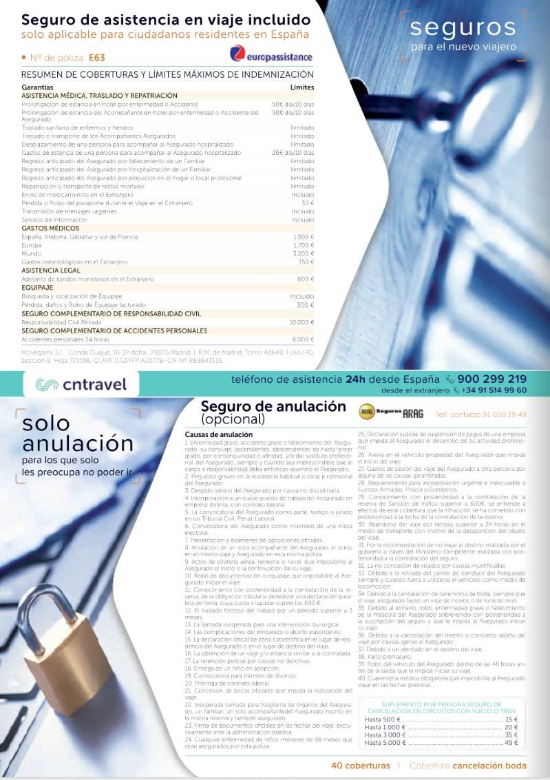 SEGURO DE ASISTENCIA EN VIAJE INCLUIDO / SEGURO DE ANULACIÓN PLUS