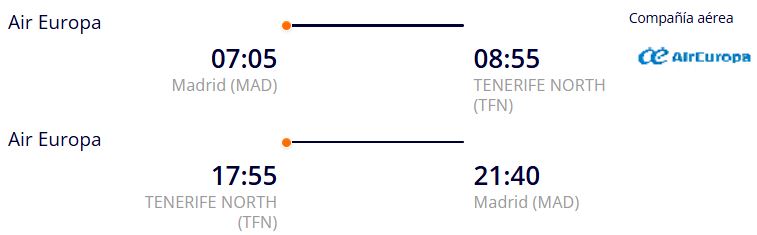 - Vuelo a destino ida y vuelta desde Madrid a Santa Cruz de Tenerife.