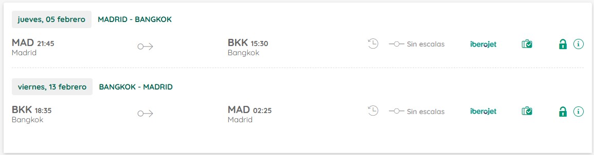- Vuelo directo Madrid - Bangkok - Madrid (con 1 maleta facturable + 1 de mano).