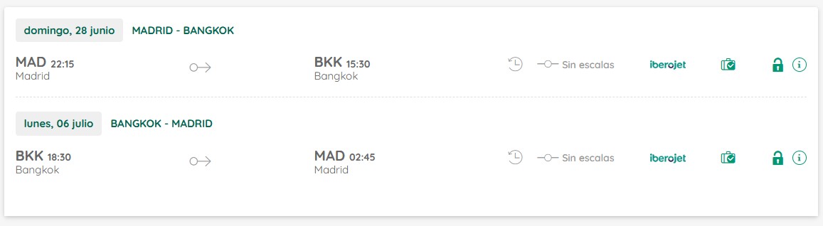 - Vuelo directo Madrid - Bangkok - Madrid (con 1 maleta facturable + 1 de mano).