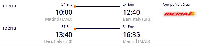 - Vuelos desde Madrid o Barcelona a Bari (Italia) ida y vuelta