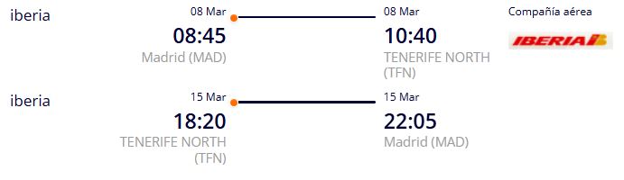 - Vuelo a destino ida y vuelta desde Madrid a Santa Cruz de Tenerife.
