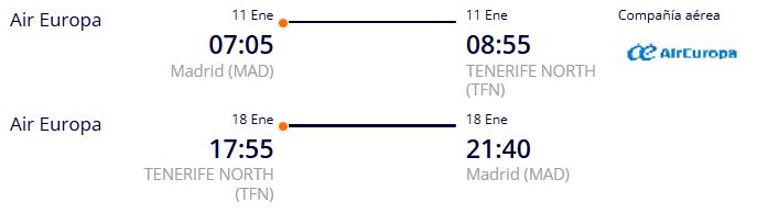 - Vuelo a destino ida y vuelta desde Madrid a Santa Cruz de Tenerife.