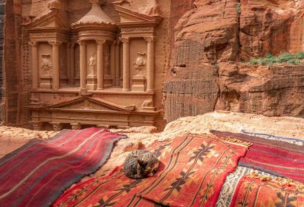 Día dedicado por completo a la visita de Petra, conocida como la “ciudad rosa”, donde hace más de 2.000 años los nabateos ubicaron la capital de su imperio a lo largo de 500 años, esculpiendo admirables templos y tumbas en las montañas rosadas y utilizando sistemas avanzados agrícolas y de conducción del agua. El recorrido comienza por la Tumba de los Obeliscos y continuando por el Siq, cañón de más de 1 Km de longitud tras el cual se descubre el Tesoro, una tumba colosal decorada con columnas y esculturas de un refinamiento y una belleza incomparables. Continuación hacia la calle de las fachadas y el teatro para acercarnos a los 850 escalones que nos llevarán hasta el imponente Monasterio “El Deir”.