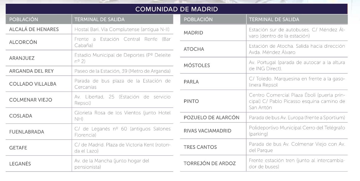 ¡IMPORTANTE! Se indicarán los horario con 5 días de antelación a la fecha de salida. Los puntos de recogida indicados son fijos y están garantizados salvo excepciones expresas.