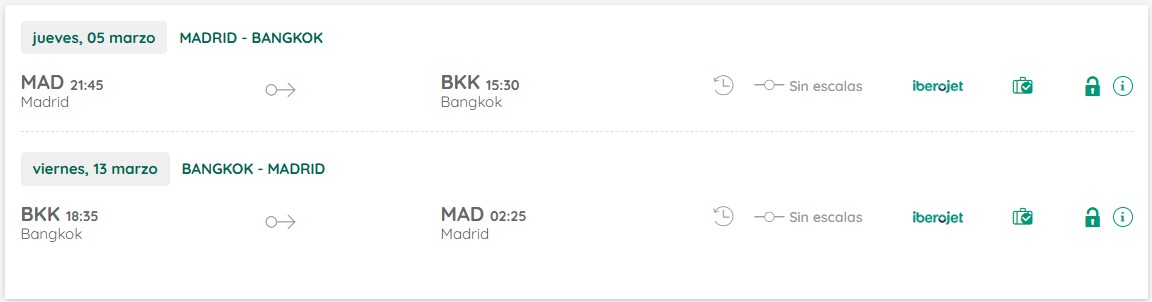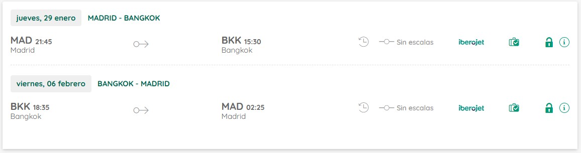 - Vuelo directo Madrid - Bangkok - Madrid (con 1 maleta facturable + 1 de mano).