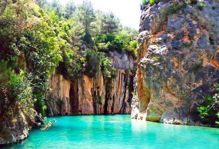 Día 2: Ruta de Los Estrechos del Mijares y Fuente de los Baños (9 km aprox - Nivel Básico). Baño en aguas termales naturales.